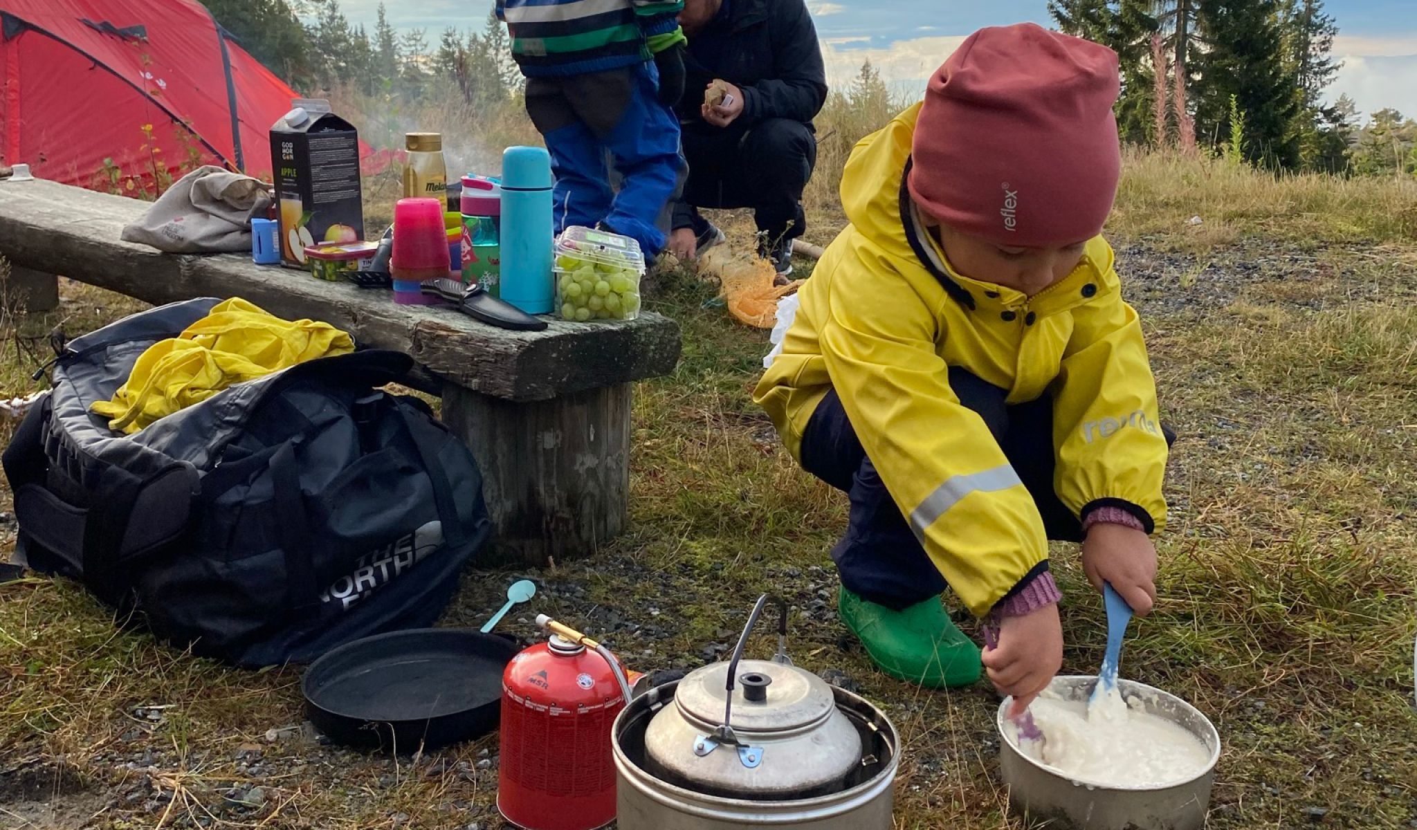 Den travle småbarnsfamilien har aktive hverdager, men prøver å få mest mulig kvalitetstid med teltturer, friluftsliv, klatresentre og reiser i helgene.